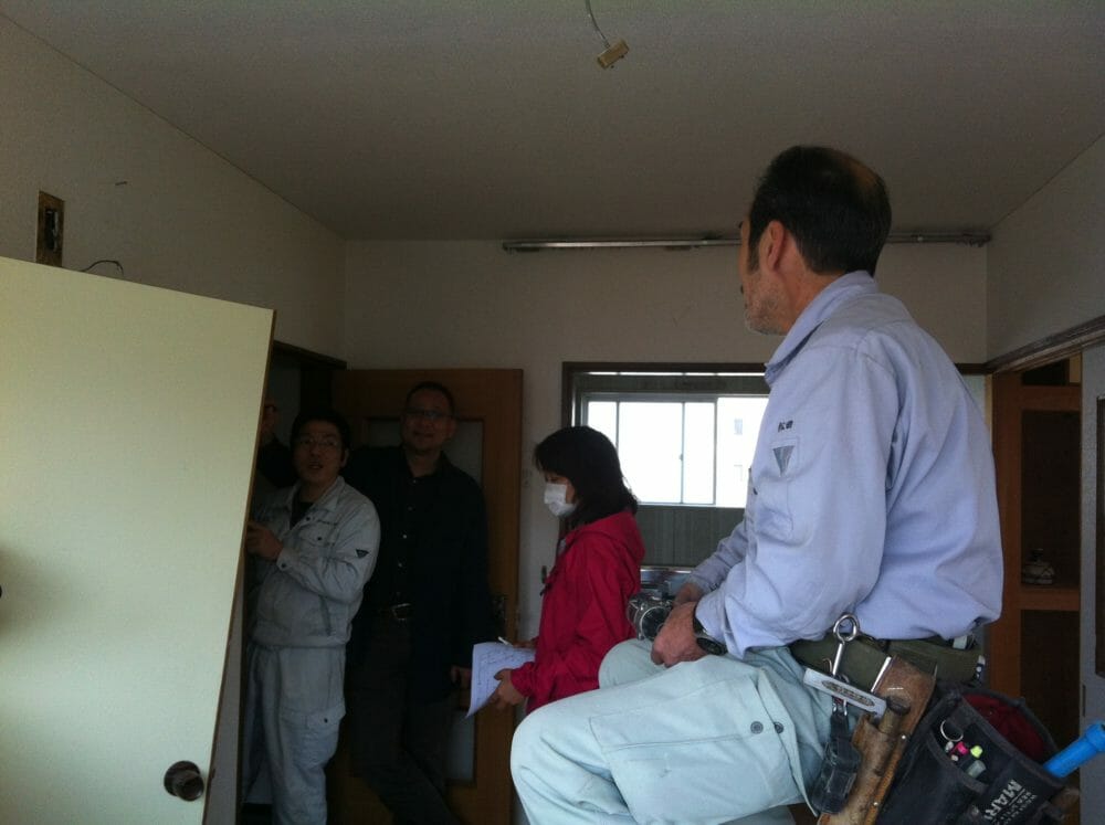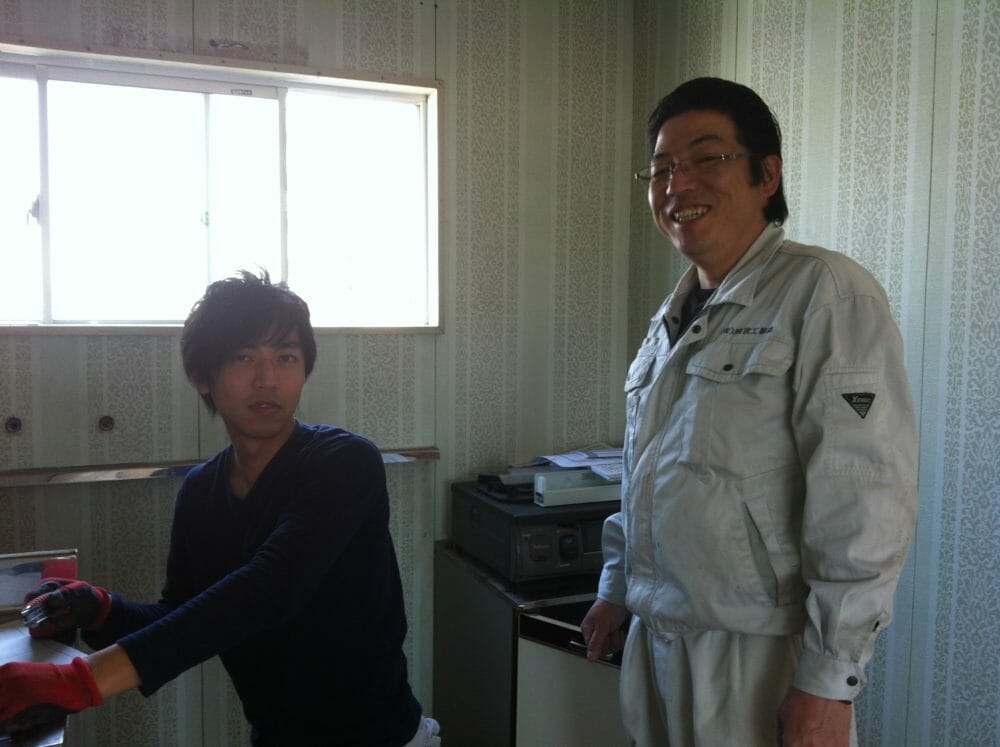 現場で起こる様々な難問を癒しの笑顔で解いてゆく現場監督の小西さん(と男前の水道屋さん再び)↓