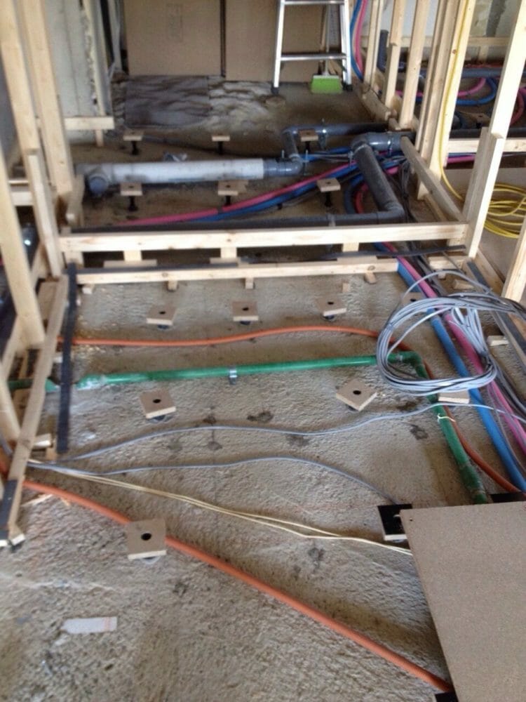水、湯、ガス、配水管が床下に仕込み終わっておりました。