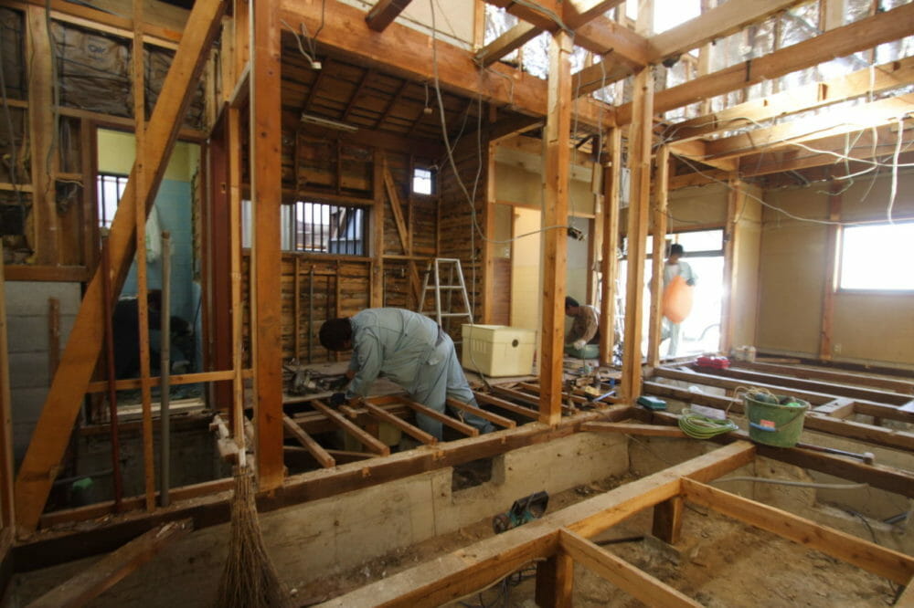 床下の部分や柱など躯体部分が露になってきました
